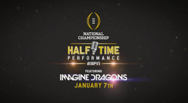 ESPN has announced that Grammy award-winning band Imagine Dragons will perform during halftime of the College Football Playoff National Championship game.