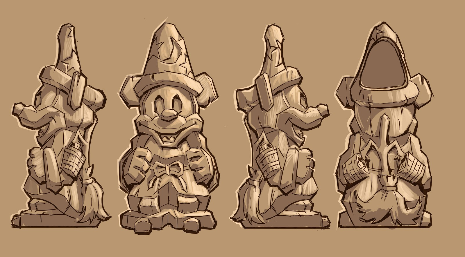- Tom Whalen: "Some of my fondest childhood memories involve weekend sleepovers at my grandmother’s house. No getaway would be complete without a) loads of homemade food b) playing in her expansive attic and c) watching movies with her. She had an early-model VCR that she used to record everything from Godzilla flicks to Hawaii Five-O to Disney films. It was during one of my weekend visits that she presented Fantasia to me and I was floored. I remember noticing how different that film was from other Disney fare in both structure and tone. The Sorcerer’s Apprentice in particular, felt more intense and perilous than other animated films and Mickey’s misguided attempts at controlling magic always frayed my young nerves. I’m honored to be able to kick off my selection of Disney pins with a character that brings back so many vivid memories."