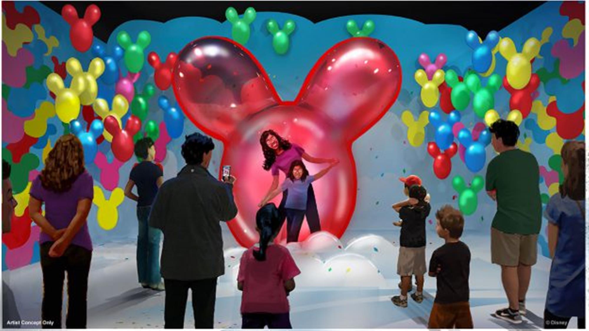 - In the Mickey at Disneyland room, guests can pose inside an 8-foot Mickey balloon, surrounded by a backdrop of bright balloon bouquets.