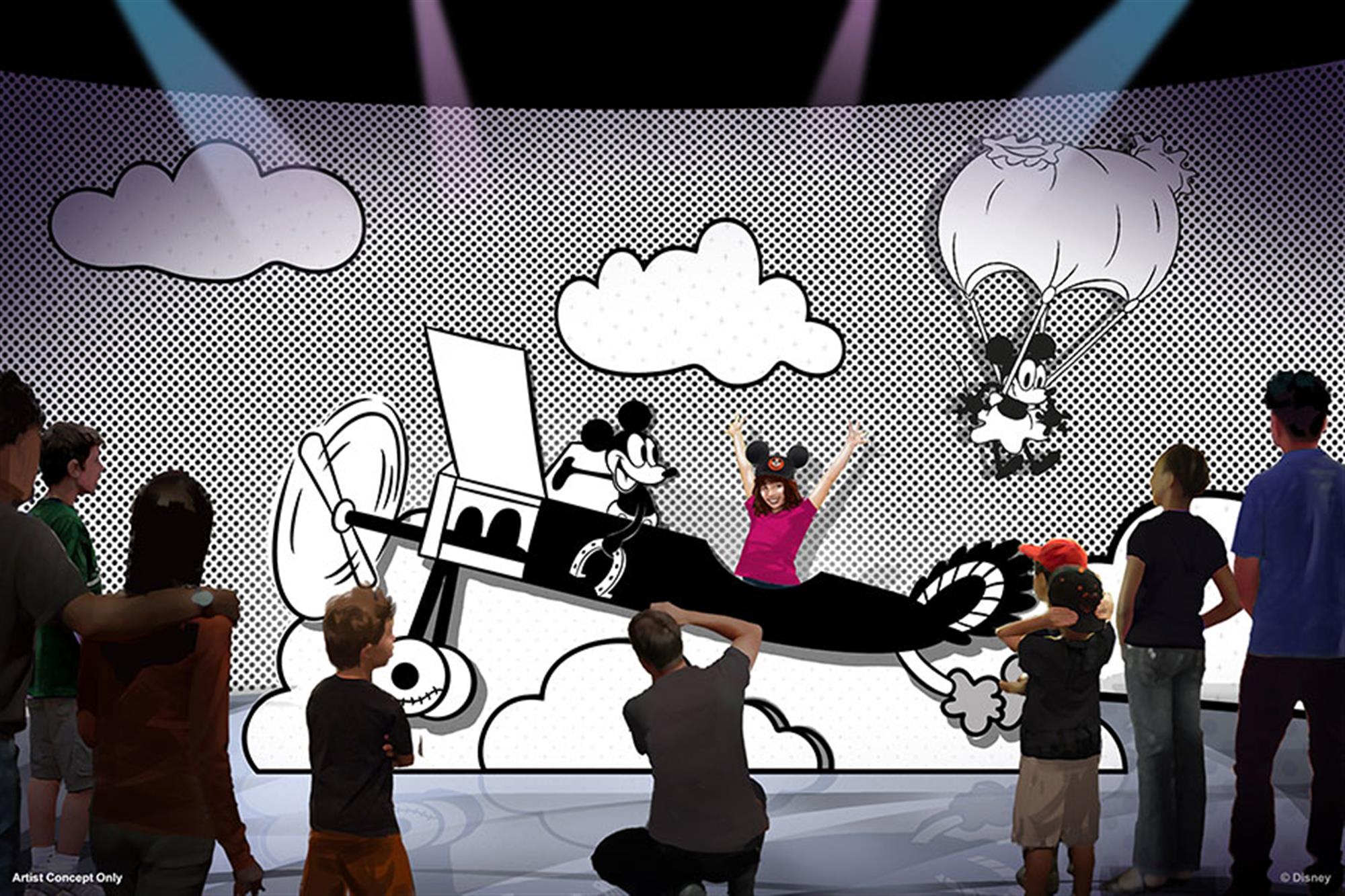 - In a salute to the classics, guests will provide the pop of color in the black and white cartoon world of “Plane Crazy,” where Mickey Mouse and Minnie Mouse both made their first appearance in 1928.