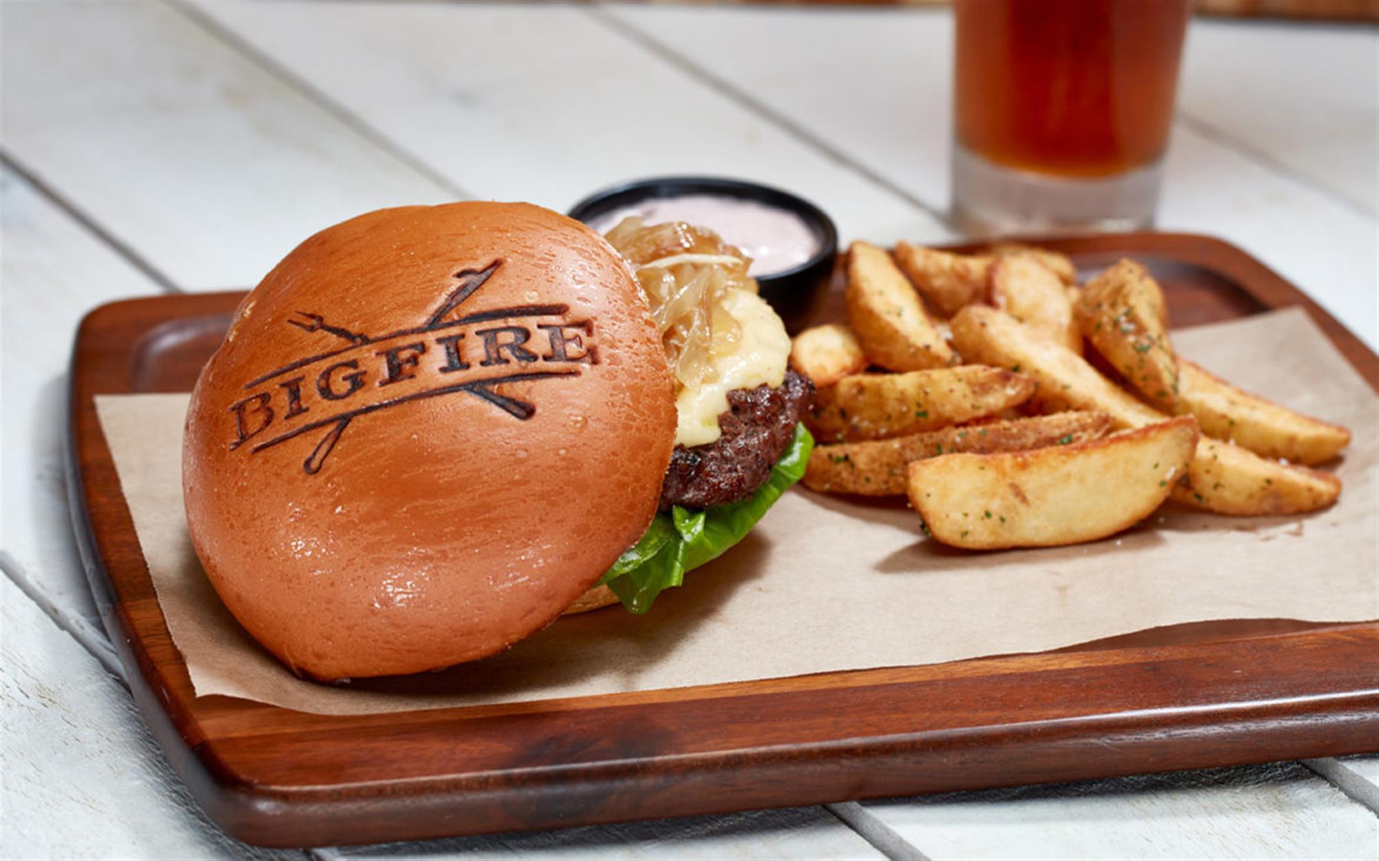- Bigfire will offer classic American dishes like the Bigfire bison burger, chili and cocoa rubbed steak, freshwater cuisine and smoked salads.