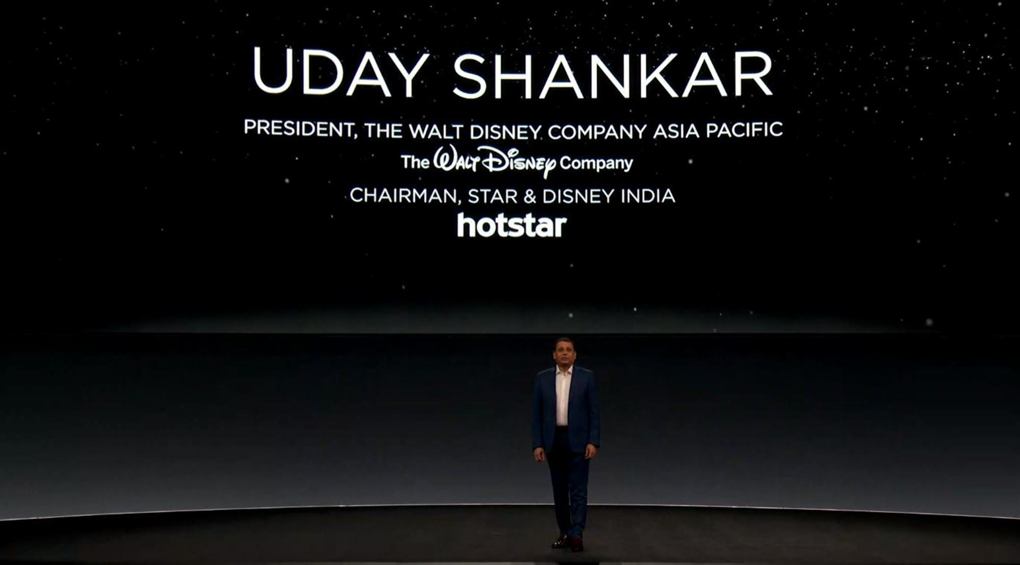 - Uday Shankar took the stage to discuss Hotstar, a Disney India streaming service.