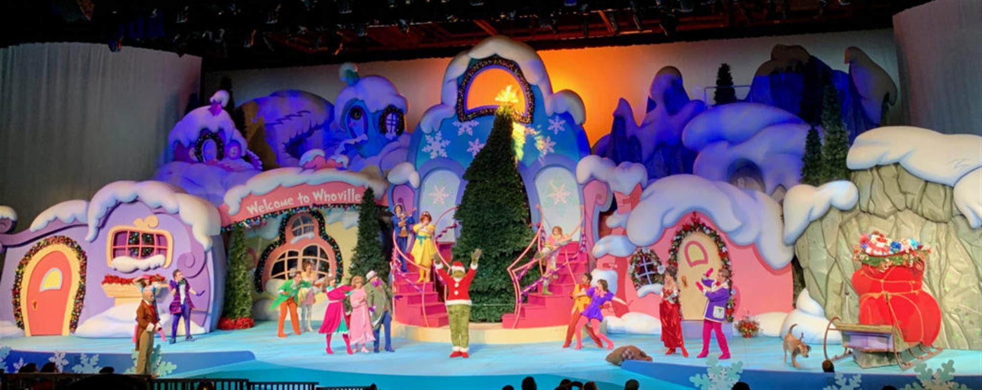 - In Seuss Landing at Islands of Adventure, guests can get into the Who-liday spirit with the The Grinchmas Who-liday Spectacular, retelling the classic holiday tale from Dr. Seuss.