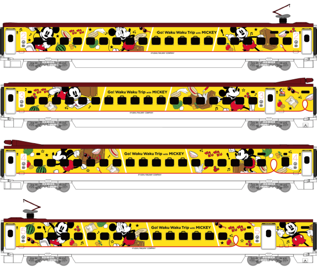 - The each of the train’s six cars will feature illustrations of Mickey enjoying a summer trip.