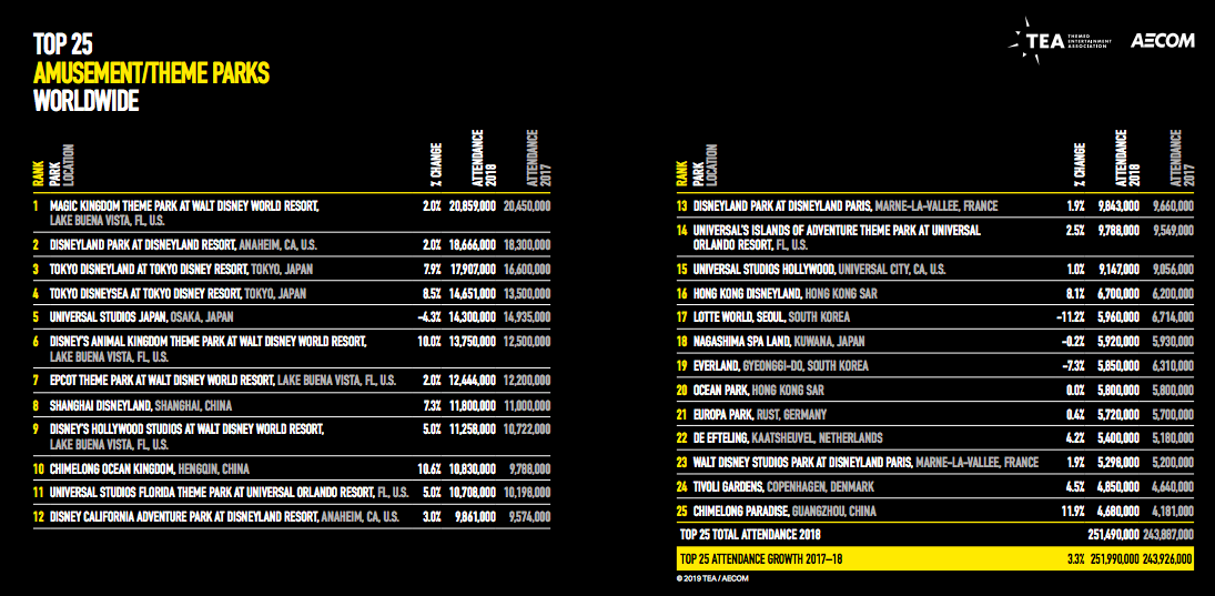 - You can see the TEA’s global attractions attendance report for 2018 here.