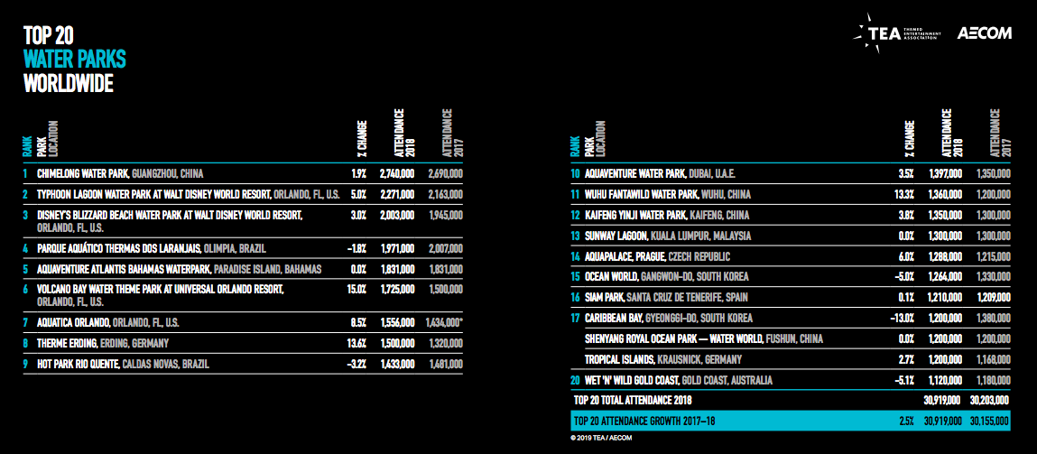 - Disney’s Typhoon Lagoon saw a 5% increase and welcomed 2.2 million guest, once again claiming the second spot (behind only Chimelong Water Park).