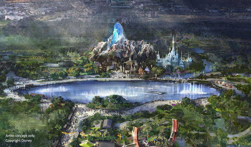 - An area inspired by Frozen will become the beacon of the park’s extension, with a re-creation of the famous port of Arendelle at the base of a 40 meter-high mountain (131 feet).