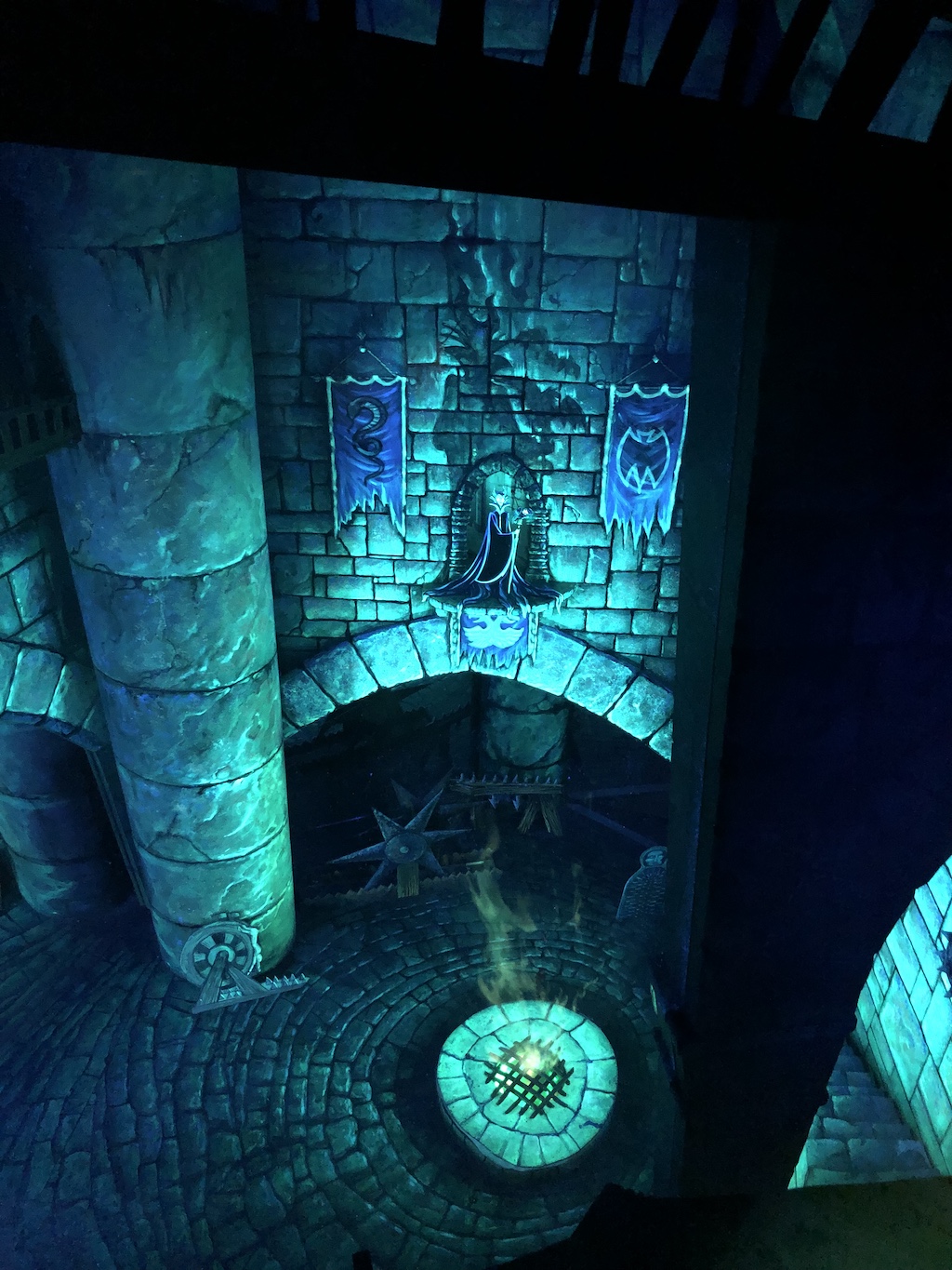- The castle features darker paint on the bottom that gradually lightens toward the top, enhancing the forced perspective effect.