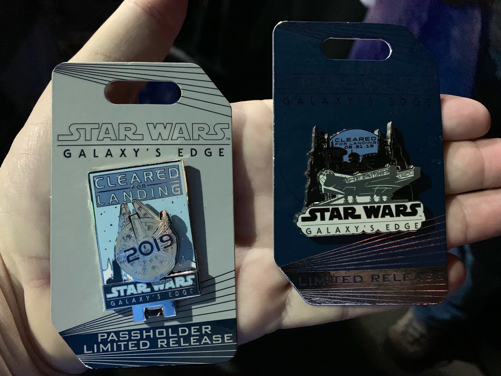 This Limited Edition Jumbo Pin (first photo) and the Limited Edition Pin Box Set (second photo) can only be found at Star Wars Launch Bay. The Millennium Falcon Jumbo Pin (also seen in the second photo) however, can be found at various locations throughout Disneyland Resort.