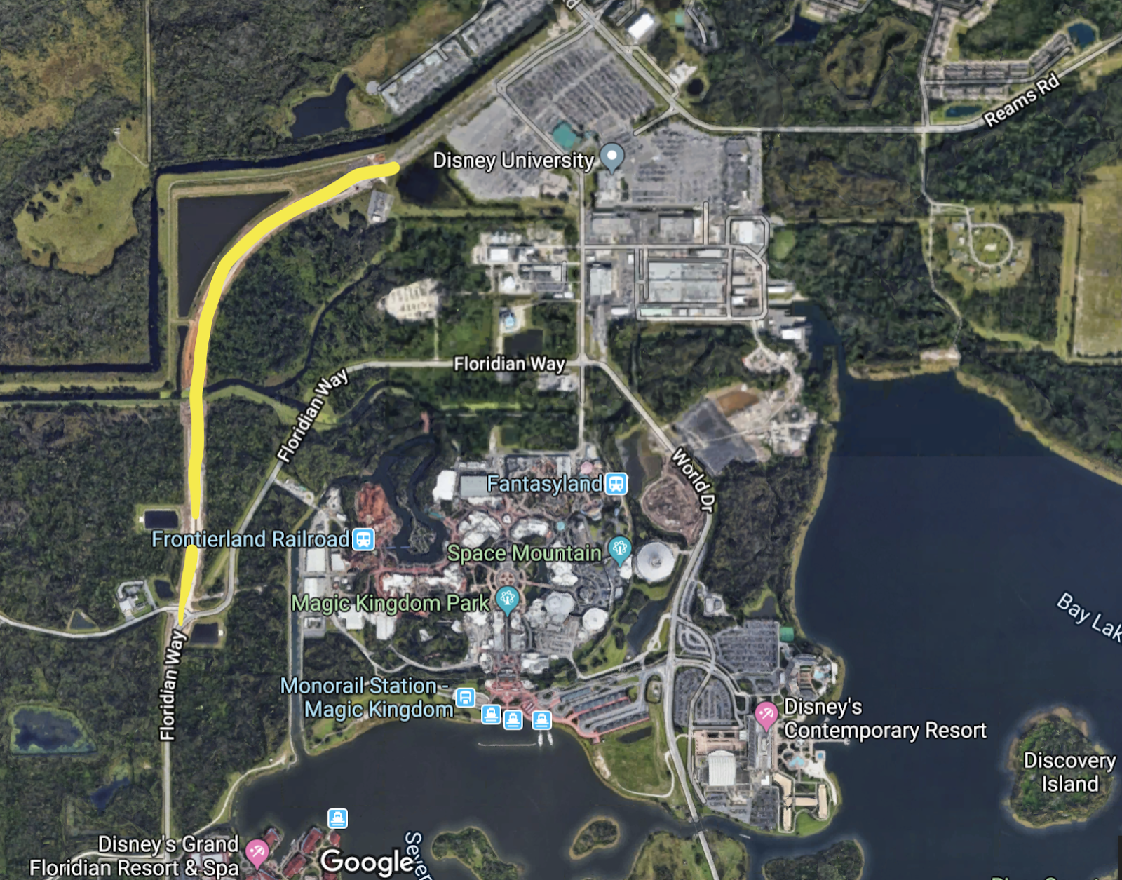 - Located to the Northwest of Magic Kingdom, this extension connects at Reams Road and Floridian Way, near the Reedy Creek fire station.