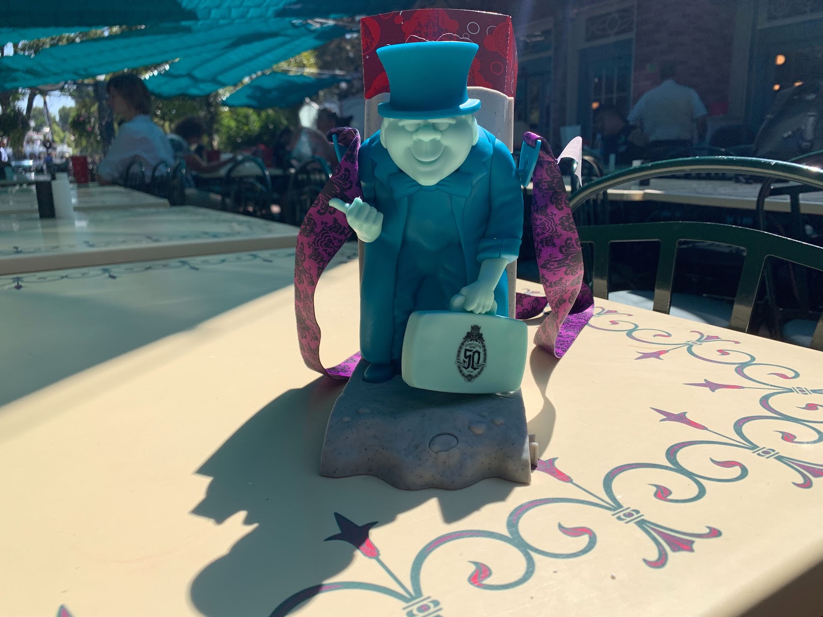 - This commemorative item features Phineas, one of the three hitchhiking ghosts who have been following guests home for 50 years.