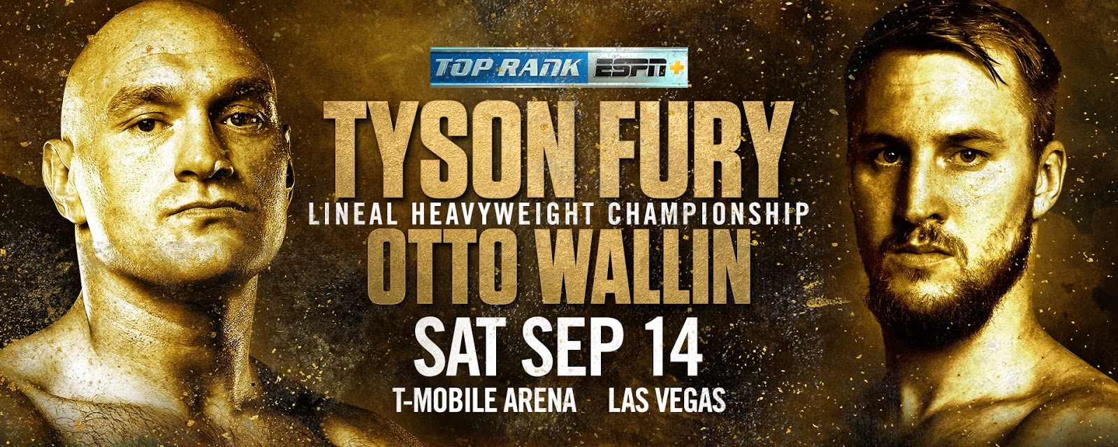 - Less than three months since his second-round destruction of Tom Schwarz at the MGM Grand Garden Arena, Tyson Fury, a.k.a. “The Gypsy King,” will defend his lineal heavyweight championship versus the undefeated Otto Wallin Saturday, September 14 at T-Mobile Arena in Las Vegas and exclusively on ESPN+.