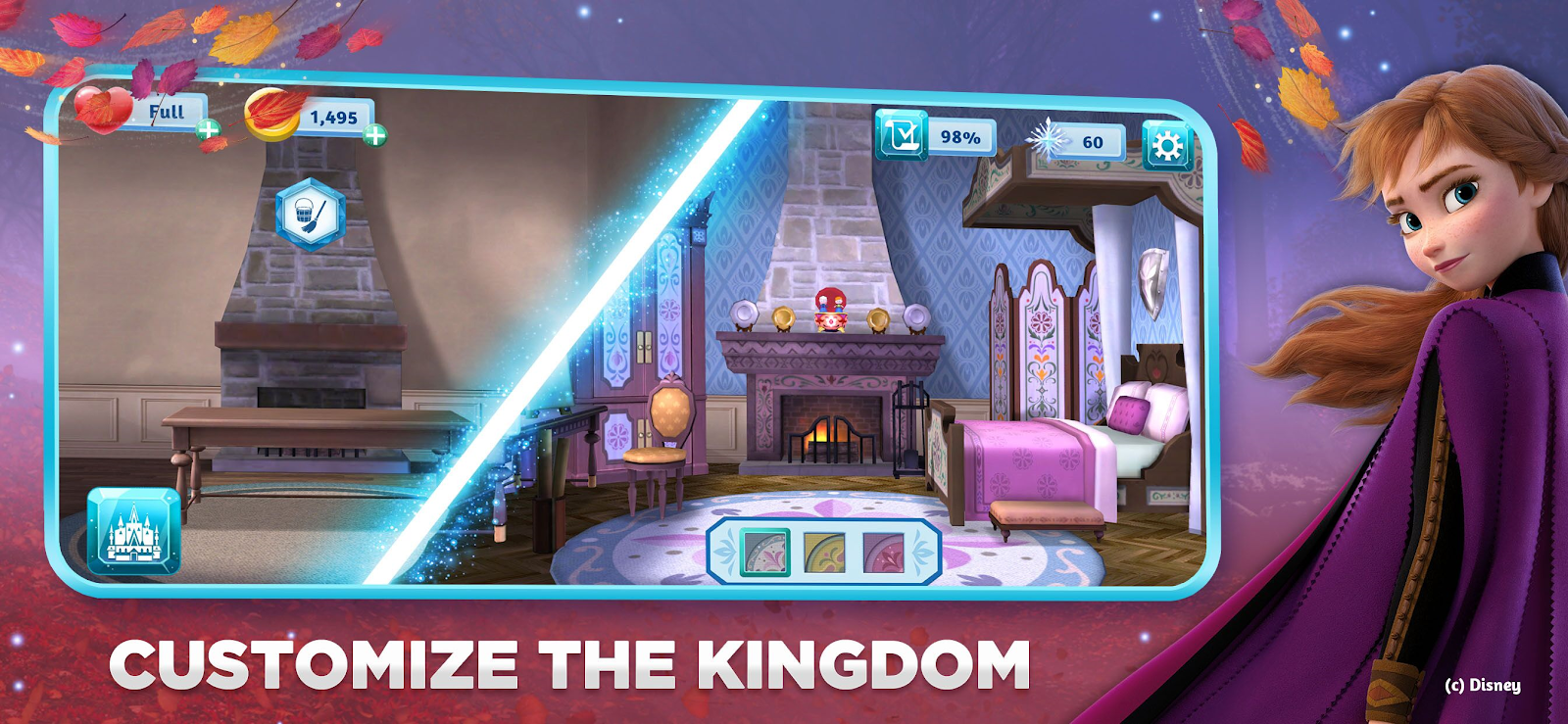 - Players will join Elsa, Anna, Kristoff, Sven and Olaf as they explore the Kingdom, customize the castle, and immerse themselves in new and familiar locations throughout Arendelle and beyond.