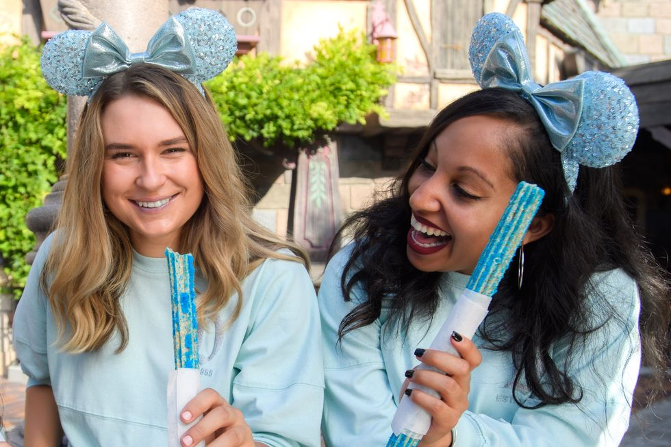 - Arendelle Aqua Churros – are classic churros covered in aqua-colored sugar and will be available at the Hub popcorn cart