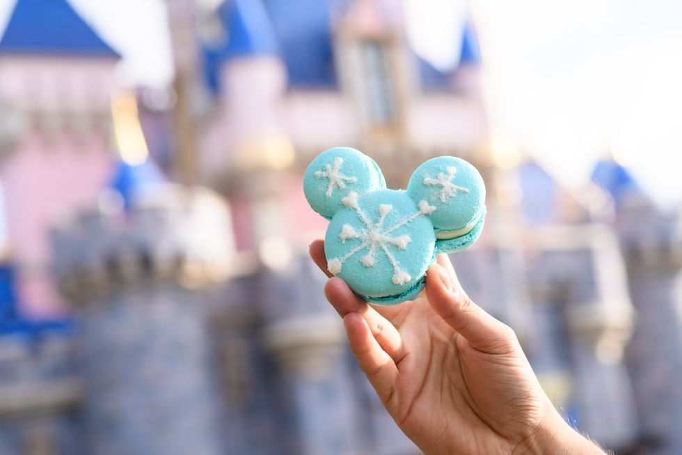 - Arendelle Aqua Macaron – Mickey-shaped macaron with buttercream and blueberries and cream filling that can be found at Jolly Holiday Bakery & Café and Fiddler, Fifer & Practical Café