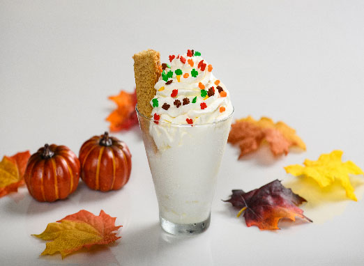 - If you like pumpkin spice, you will love the all-new Pumpkin Milkshake at Leaning Palms. Topped with whipped cream and colorful fall sprinkles, this milkshake makes for the perfect seasonal dessert.