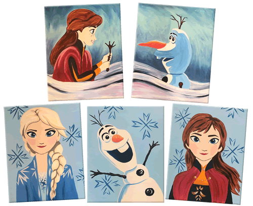 - Guests can choose from a Mommy & Me painting of Anna and Olaf or a Pick Your Character painting where guests can choose between Anna, Elsa or Olaf.