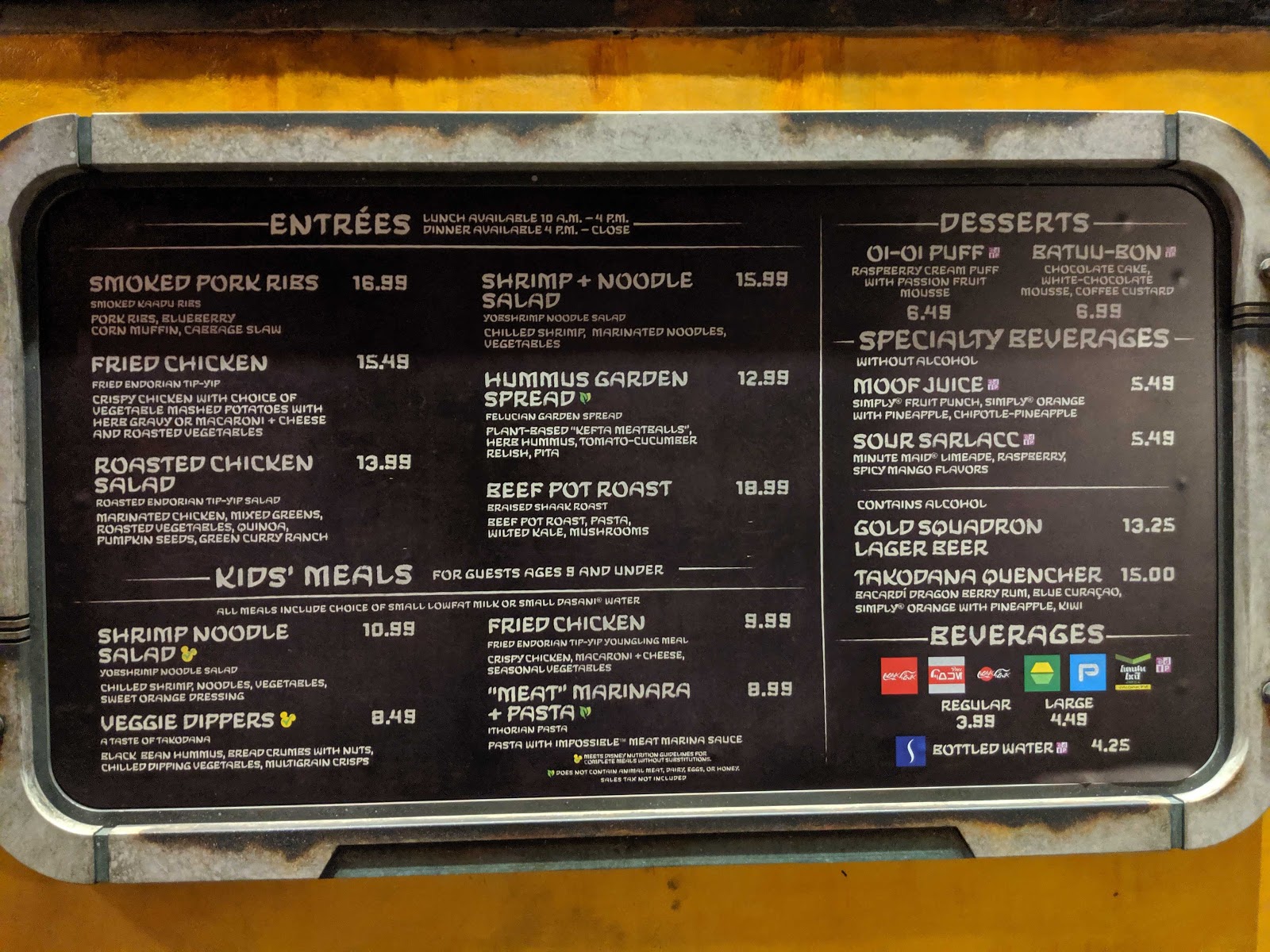 Star Wars:Galaxy’s Edge hasn’t even been open for two months at Disney’s Hollywood Studios yet and already there are changes being made. Docking Bay 7 Food and Cargo has deemphasized the Star Wars-themed names on their menu.