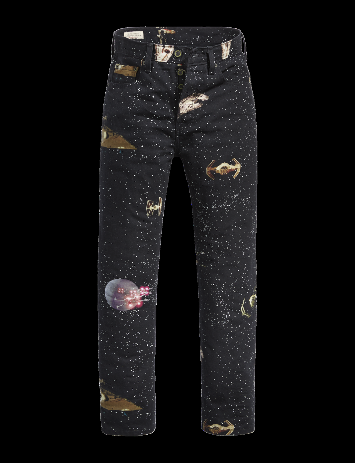 - Every piece also features iconic elements from the Star Wars galaxy—famous archival graphics of favorite characters and starships from the original films, plus unique co-branding elements like Levi’s leather patches, buttons, tabs, printed pockets and the famous Levi’s Batwing logo, all with a Star Wars twist.