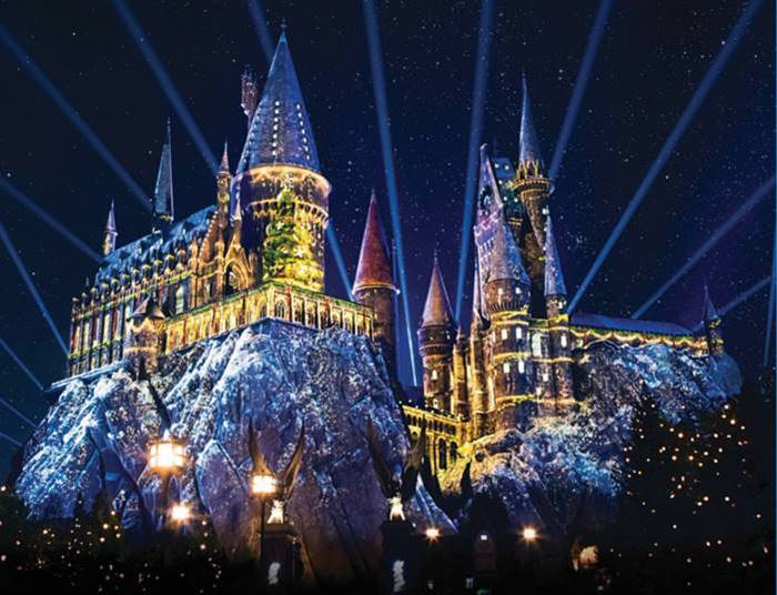 - An annual family tradition, “Christmas in The Wizarding World of Harry Potter” adds holiday warmth and cheer to this beloved land as the quaint town of Hogsmeade village is enchanted with seasonal décor uniquely themed to each of the individual storefronts and a dazzling light projection spectacular brings the iconic Hogwarts castle to life.