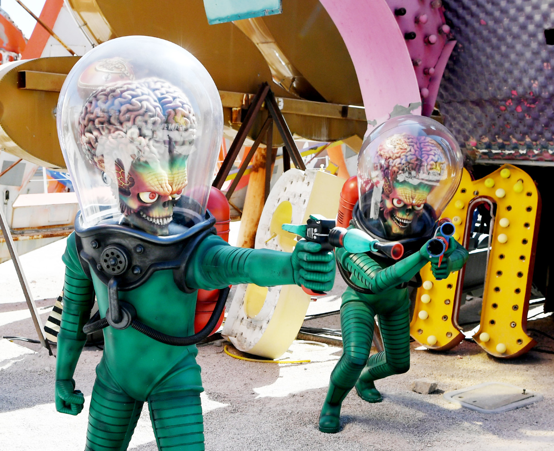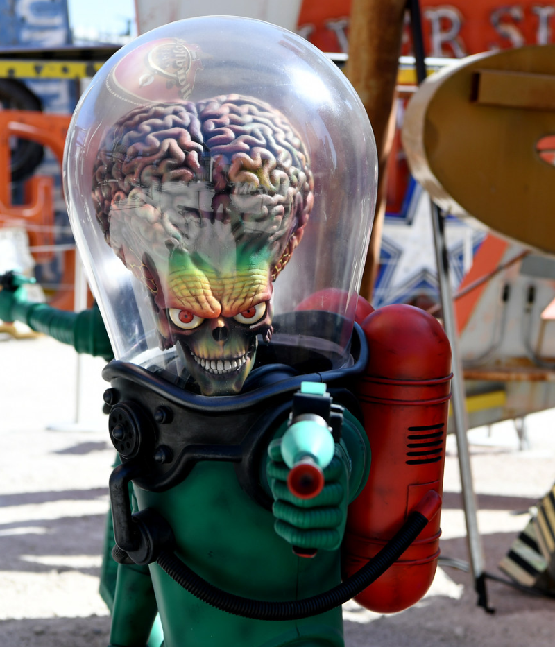 In Tim Burton’s film, Mars Attacks! Las Vegas (among other cities) is invaded and destroyed by Martians and maybe a little bit by Jack Nicholson too. But now, over two decades after that movie came out, Tim Burton has taken over the Neon Museum in Las Vegas with Lost Vegas: Tim Burton @ The Neon Museum