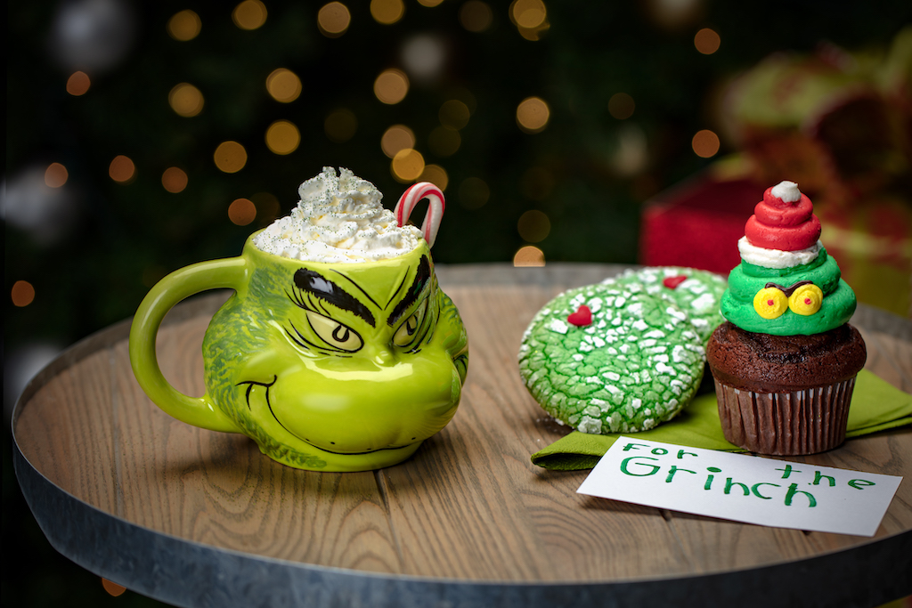 - Grinchmas chocolate cupcakes in Seuss Landing at Universal’s Islands of Adventure, decorated to look like the mean, green one himself – The Grinch