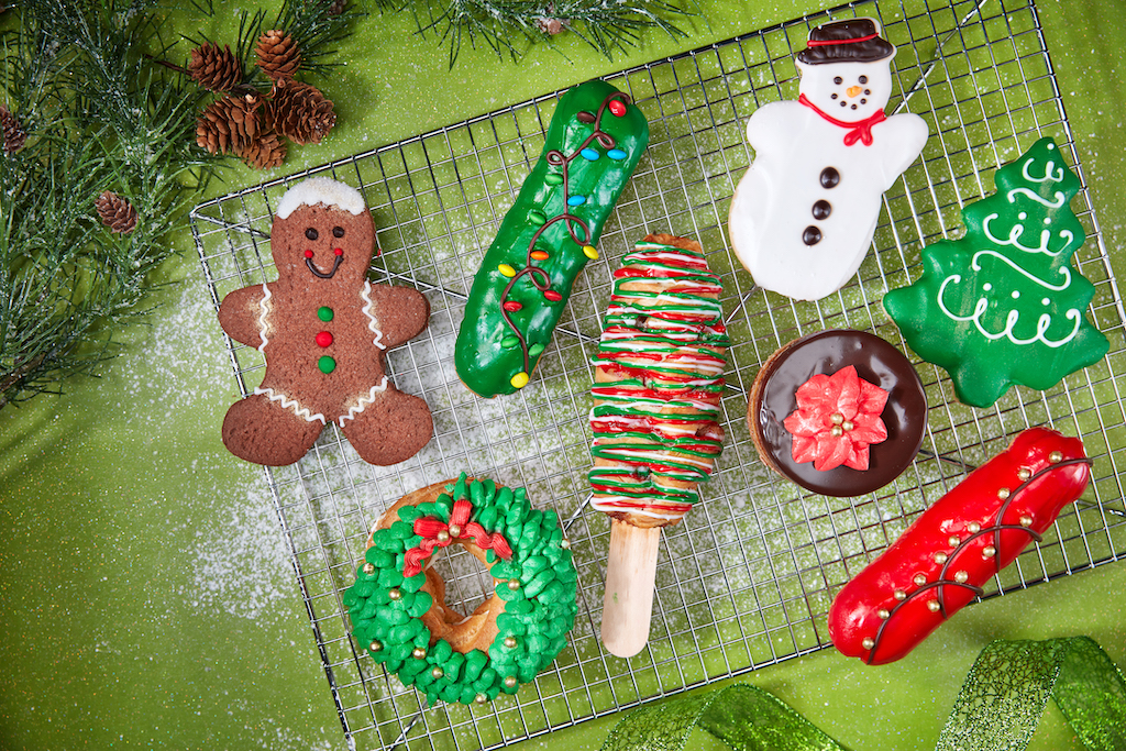 - Festive holiday pastries, such as an Apple Strudel on a stick, Christmas tree eclairs and holiday “wreaths” located in the San Francisco Bakery and TODAY Cafe in Universal Studios Florida and Croissant Moon Bakery in Universal’s Islands of Adventure