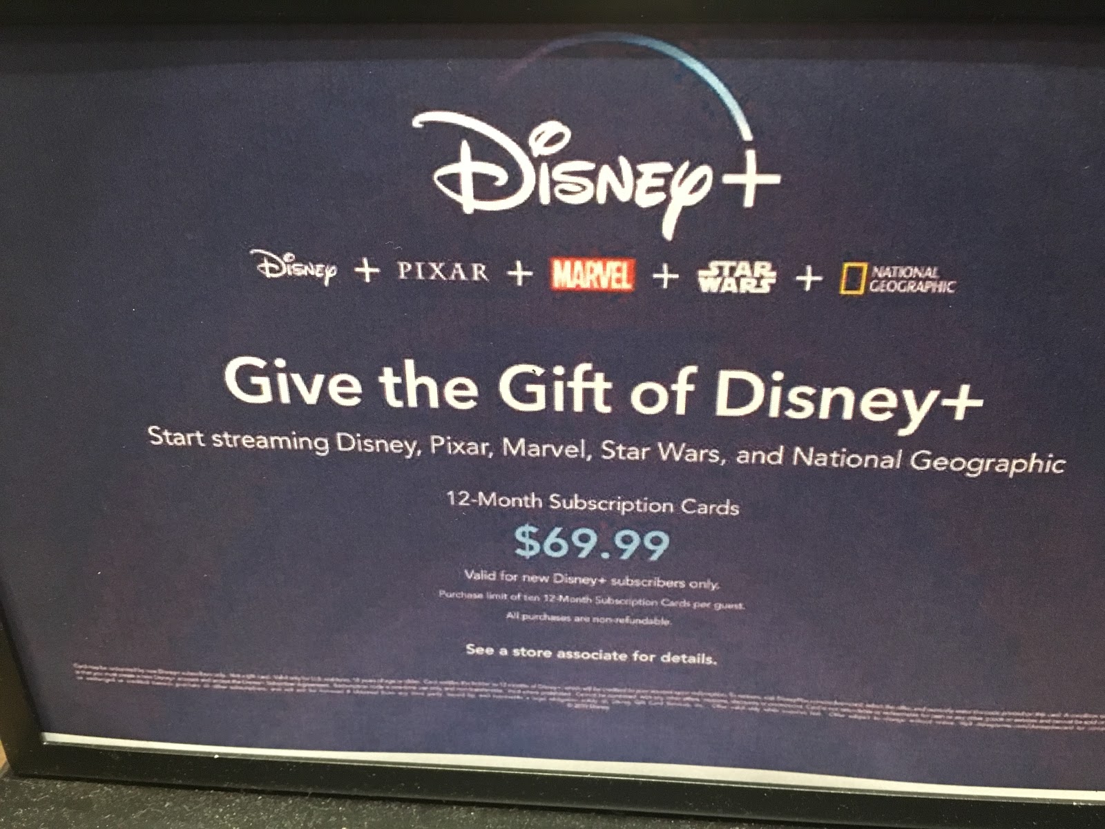 - Disney Store locations in the continental United States and Hawaii will now offer Disney+ Subscription Cards good for a 12-month subscription to the streaming service.