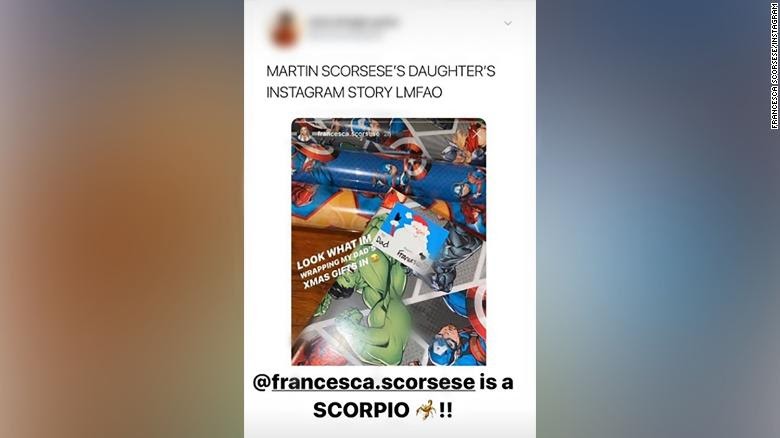 - This morning, CNN reported that Scorsese’s daughter, Francesca voiced her opinion on the matter by poking fun at her father and his remarks when she wrapped his Christmas presents in Marvel-themed paper.