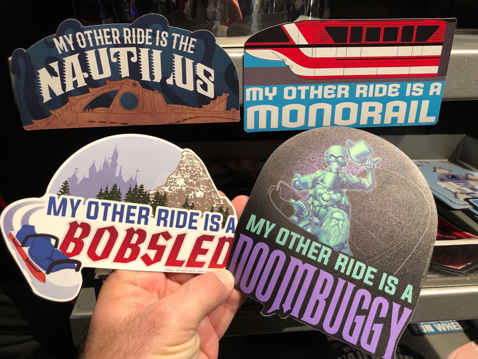 The other design is themed to a film, Disney’s 20,000 Leagues Under the Sea, which says “My Other Ride is a Nautilus.” It’s worth mentioning that Disneyland previously had an exhibit showcasing props from the film and it inspired locations at Walt Disney World, Tokyo Disneyland, and Disneyland Paris.