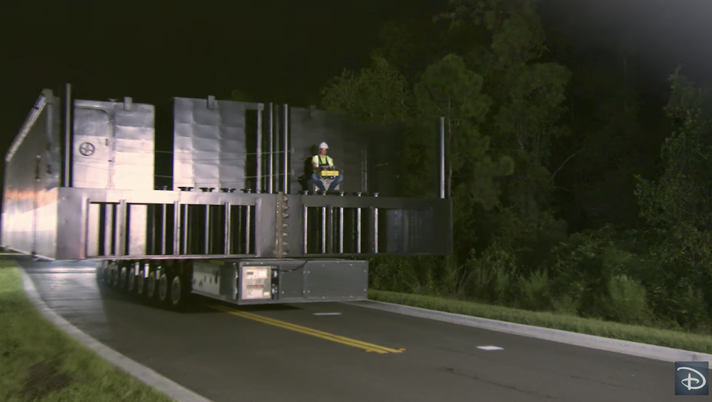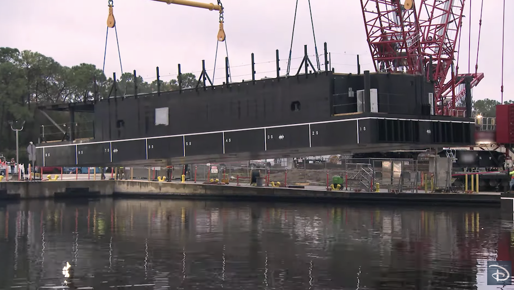 - Recently, the park received a delivery of several floating platforms that will house various show elements for its nightly performance.
