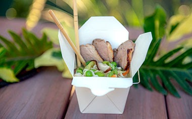 - NEW! Hawaiian Spam Bowl – Spam, Rice, Edamame, Pineapple Mango Salsa, Sesame Seeds, and Ginger Soy Glaze