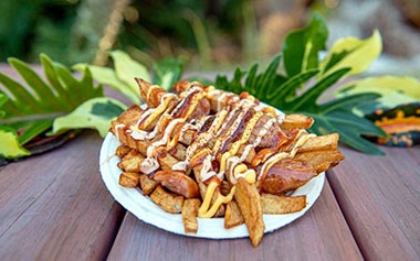 - NEW! Salchipapa – Sausage and Fries topped with Your Choice of Sauce