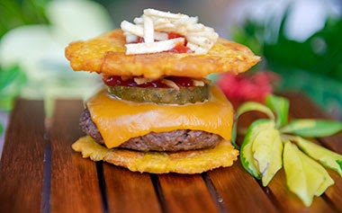 - NEW! El Jibarito Kobi Slider – Chorizo and Kobe Beef Slider Topped with Cheese, Ketchup, Pickles, and Fries Between Tostones