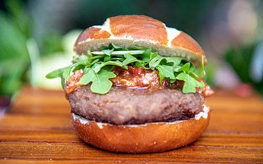 - Impossible Meat Slider – Caramelized Balsamic Onions, Fried Jalapeño Chips, and Fresh Arugula on a Mini Pretzel Bun