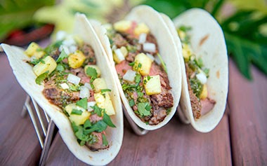 - NEW! Taco Al Pastor – Beef topped with Fresh Pineapple, Cilantro, Onion, and Fresh Green Salsa