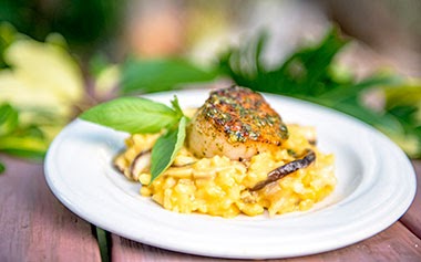 - Chili Pesto Pan Seared Scallop – Served with Wild Mushroom Saffron Risotto with Chili Pesto Sauce