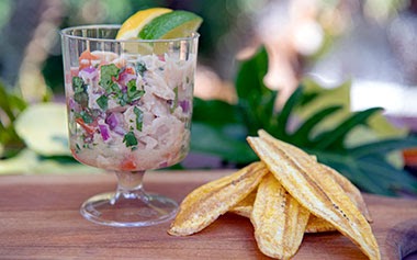 - NEW! Vegan Ceviche – Soy Protein Marinated in Citrus Juices Served with Plantain Chips