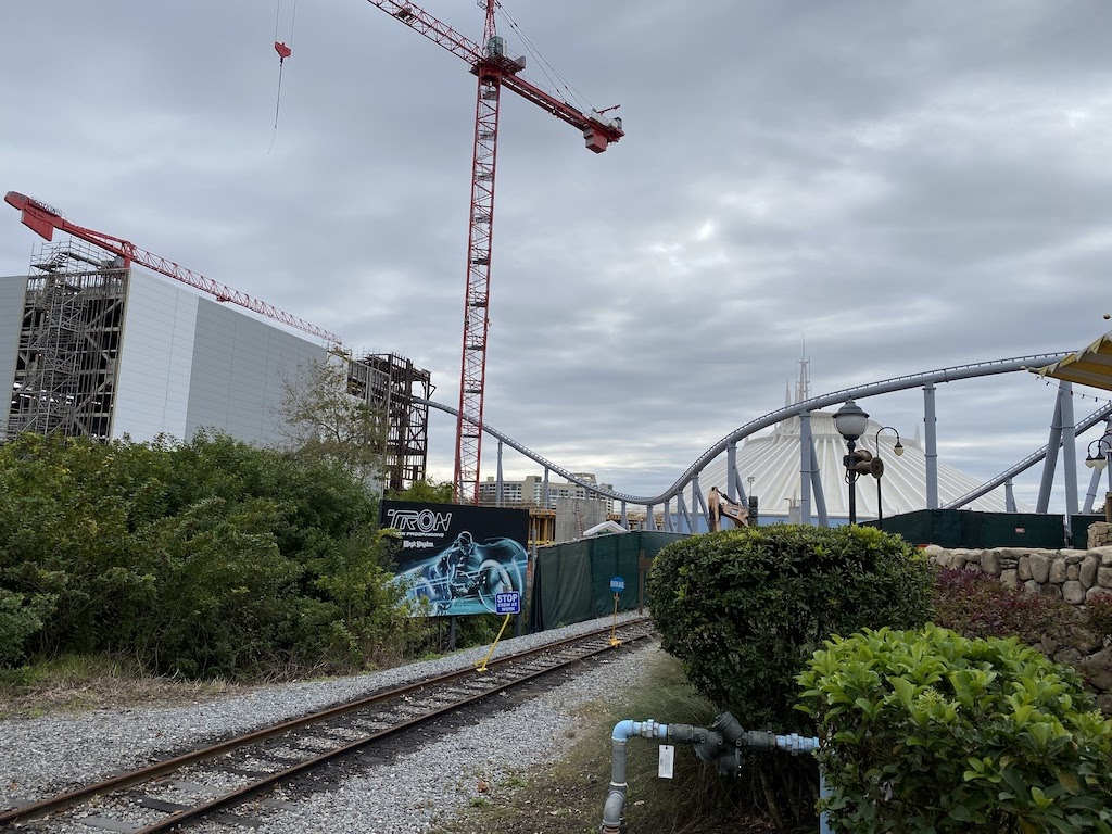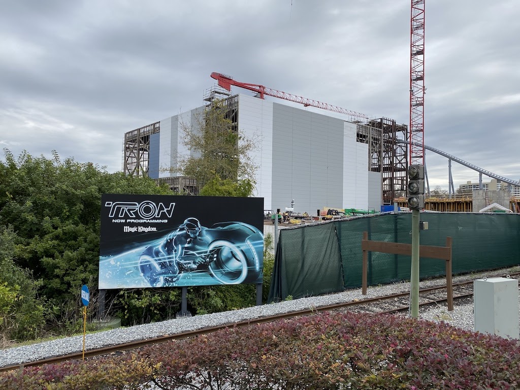 - During a recent visit to Magic Kingdom, we spotted the latest updates to the TRON coaster which show white and grey walls being put up around the track.