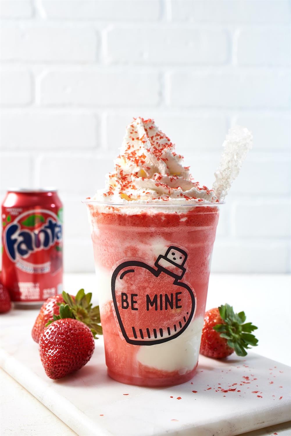 - “Love Potion” – vanilla gelato and Fanta Strawberry, topped with whipped cream and garnished with sprinkles and rock candy.