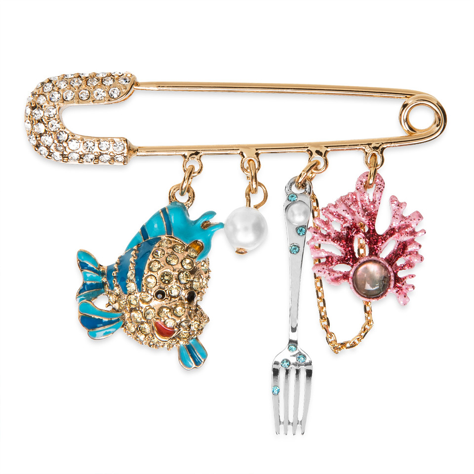 - The ears use flippable sequins to change color from a sea blue to pink. The center includes Flounder and Sebastian around a seashell with a gem inside with coral branching out behind it.