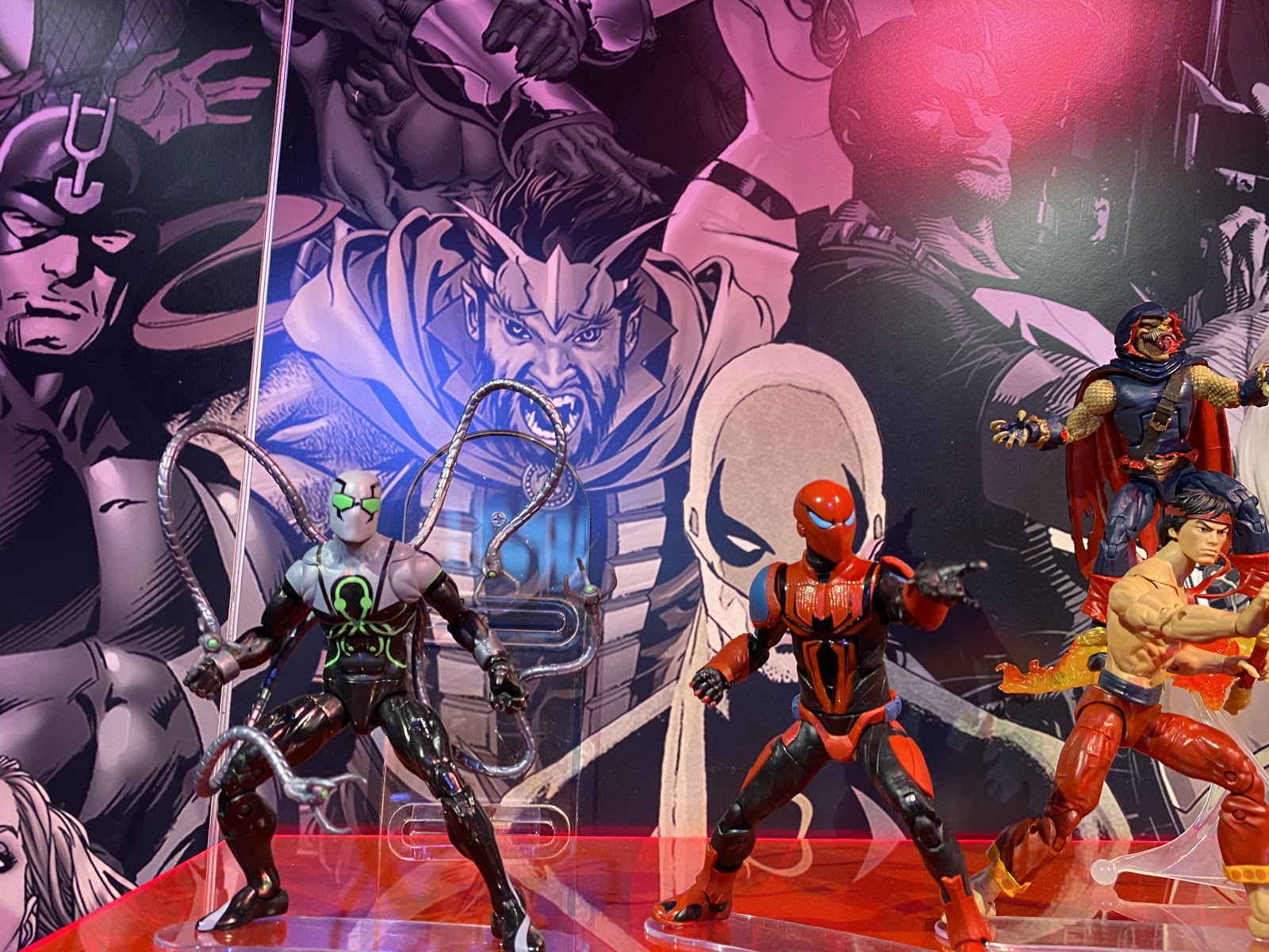 First up was a display of the recently released Spider-Man wave 11 with Build-A-Figure Demogoblin, who looked awesome as the centerpiece of this wave on the shelf. The figures in the wave are Spider-Armor MK III, Velocity Suit Spider-Man, Superior Octopus, Marvel’s Vulture, Shang-Chi, and Marvel’s White Rabbit.