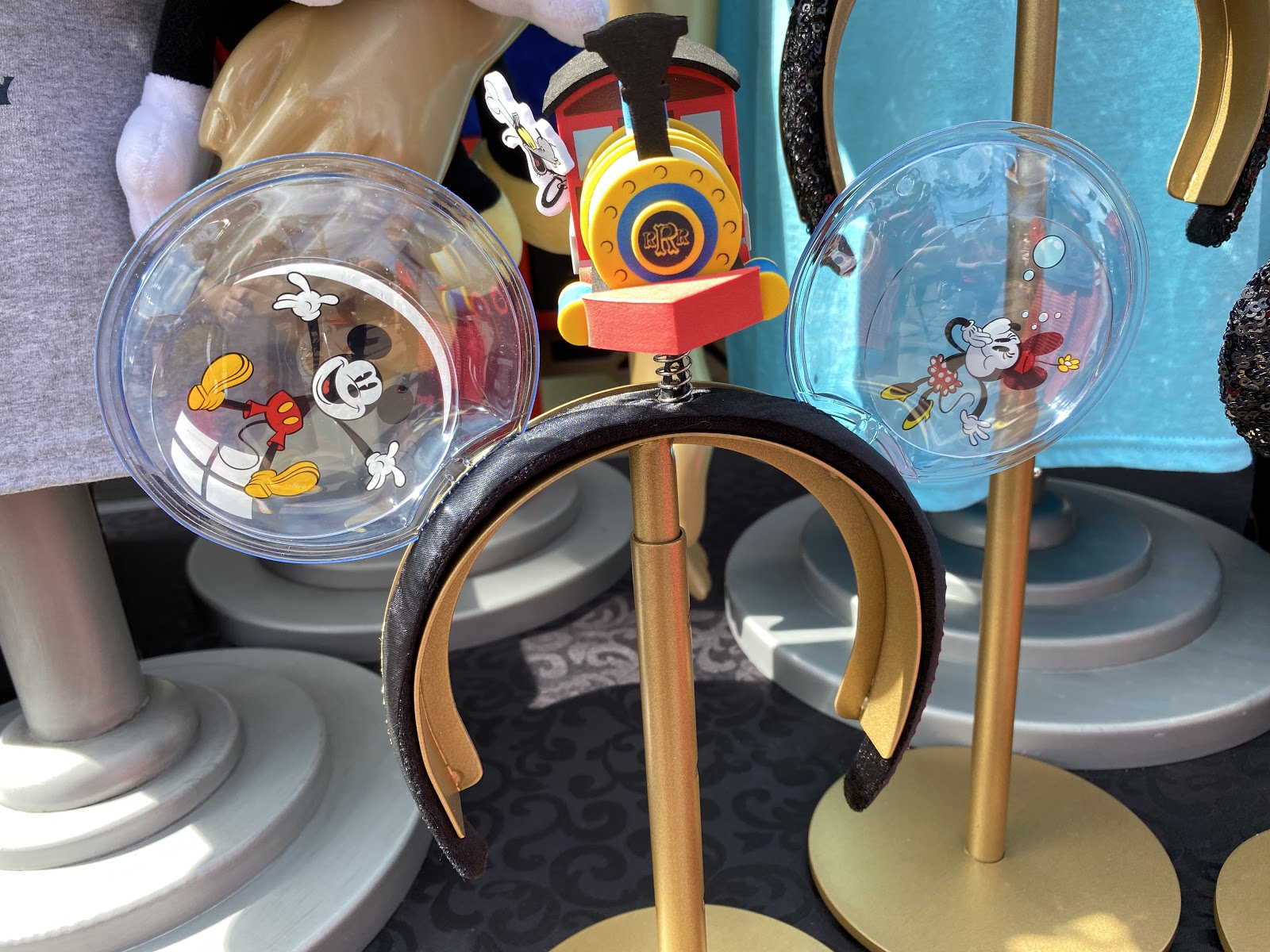 There are three new sets of ears available in this new collection, including the playful Runaway Railway design seen in the first image. If you’re looking for something a tad less whimsical, you can pick up the Mickey or Minnie ear headbands. And for those who are feeling a bit goofy, you can put on Goofy’s conductor hat.