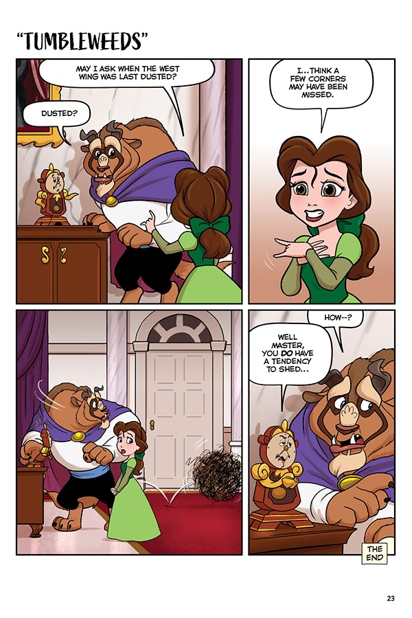 - These samples come from three stories — “Tumbleweeds,” “Embroidery,” and “Princess Chores” — featuring Belle, Merida, and Cinderella respectively.
