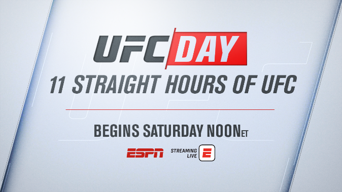 - “UFC Day” on ESPN will begin at noon ET on Saturday, March 21 with the following schedule: