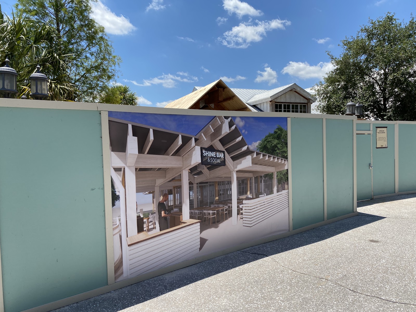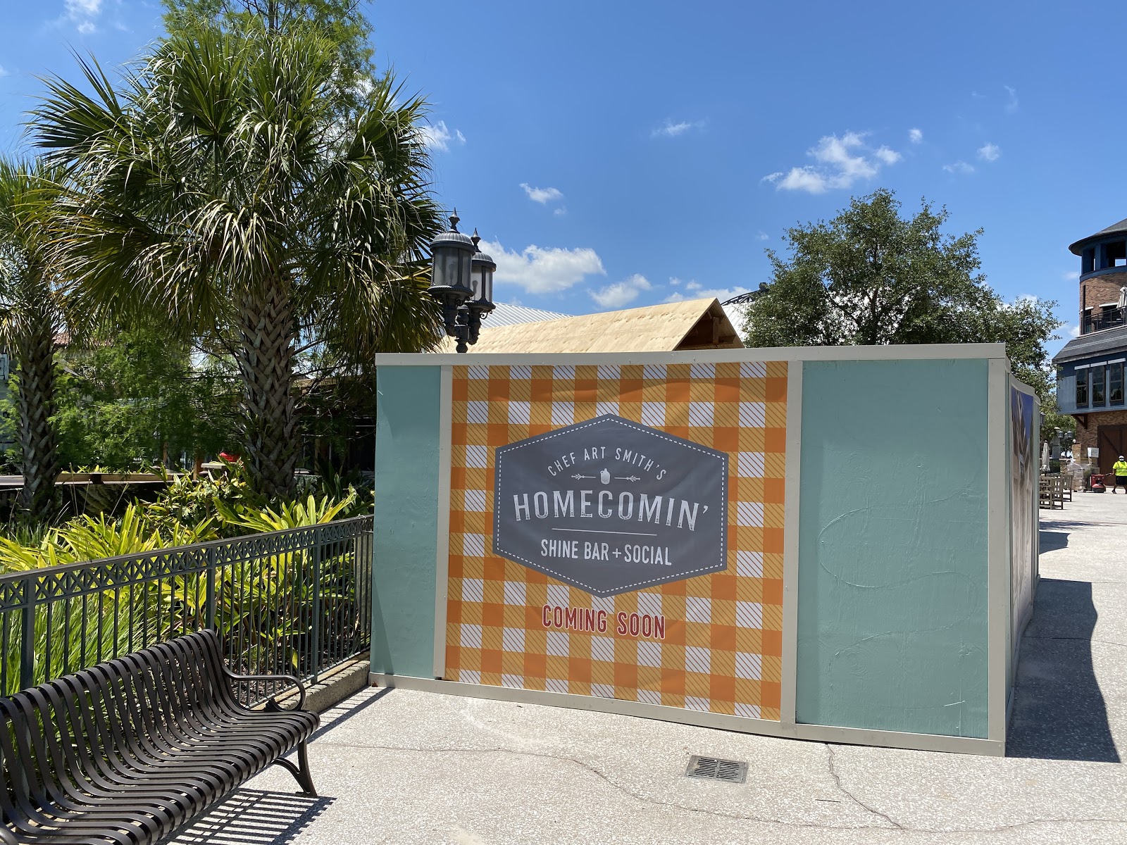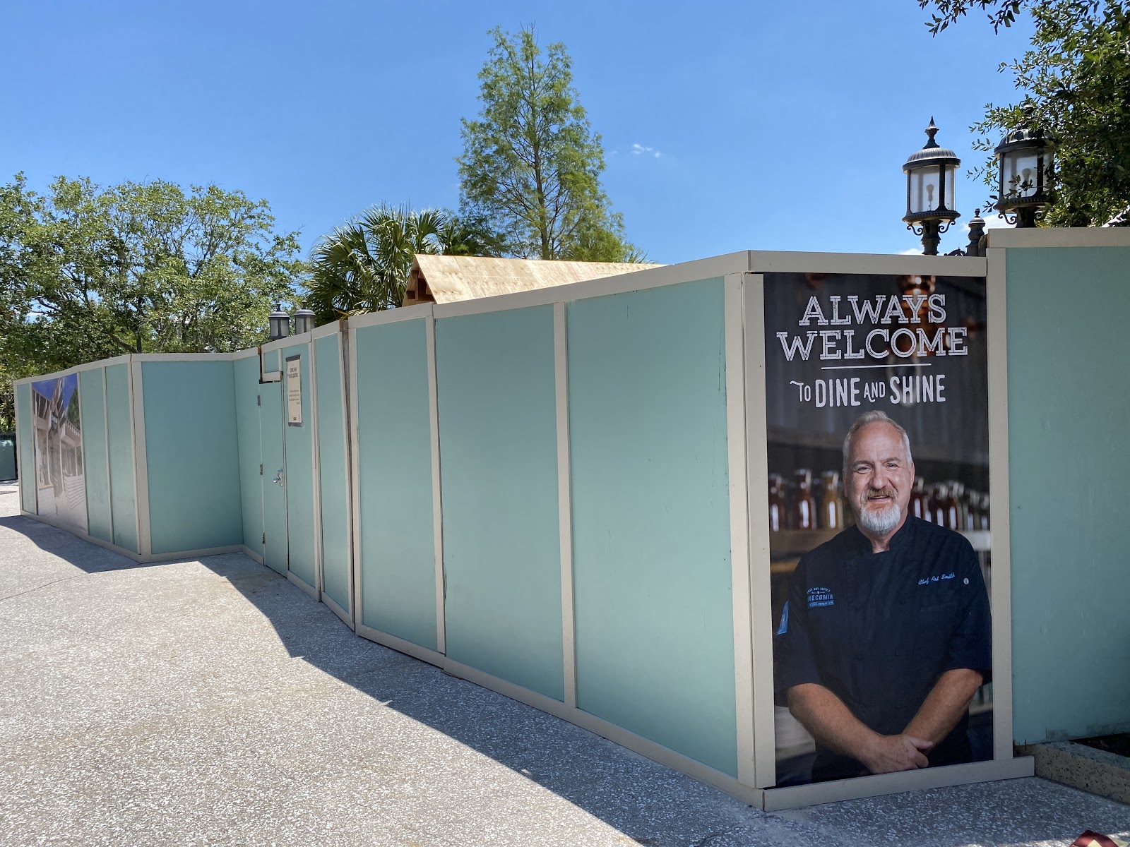 Walt Disney World’s shopping and dining destination opened only a few hours ago, but we already have some pics to share. One of the more popular restaurants, Art Smith’s Homecomin’, is continuing progress on their patio expansion for even more outdoor seating.