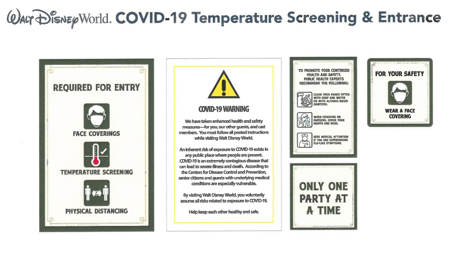 - Temperature checks will be required at the entrance of each park and will be administered by a third party, likely Advent Health as we’ve seen at the already-reopened Disney Springs.