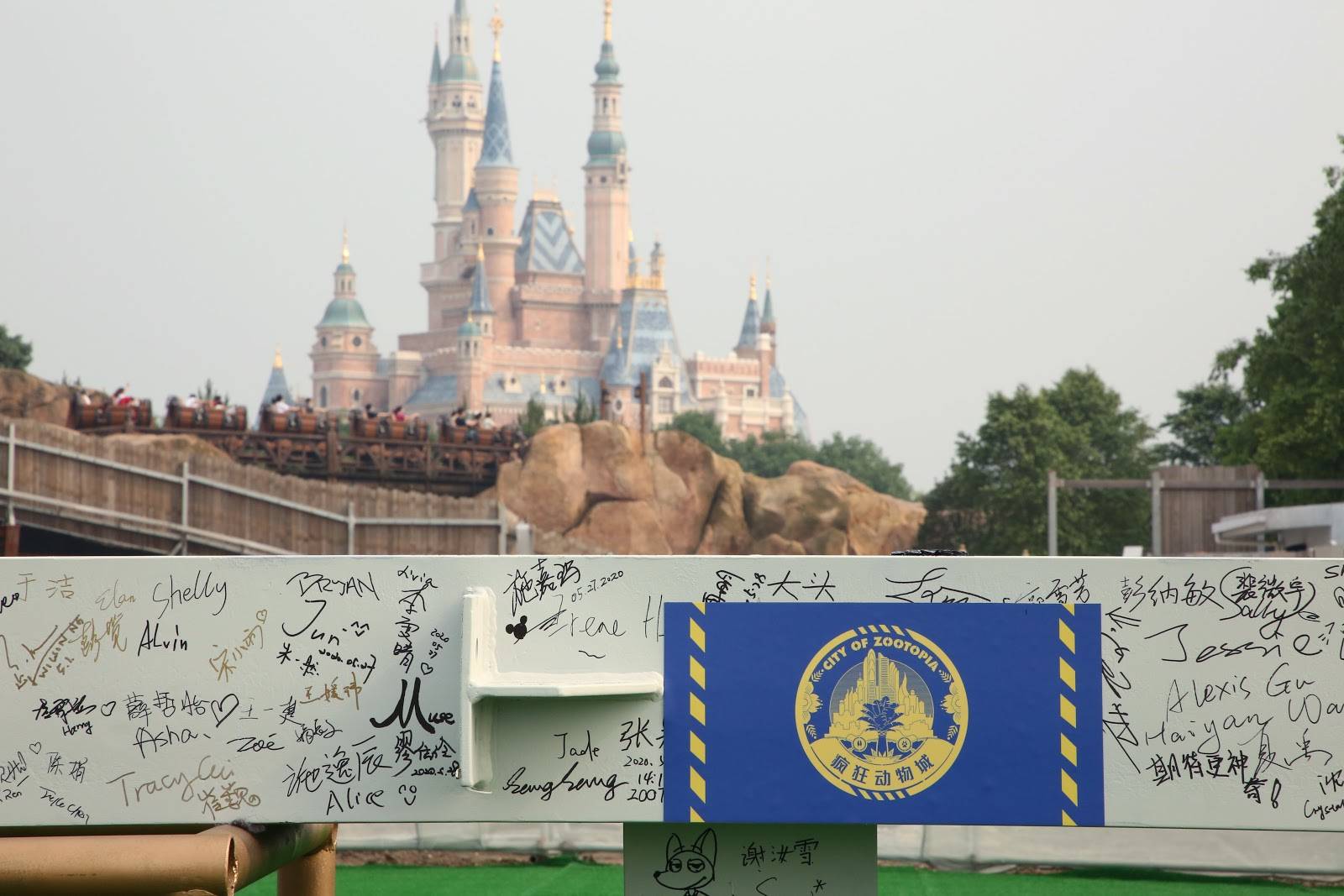 - As is a construction tradition, this first steel column was filled with signatures from leaders and developers designing the Zootopia land. This includes: