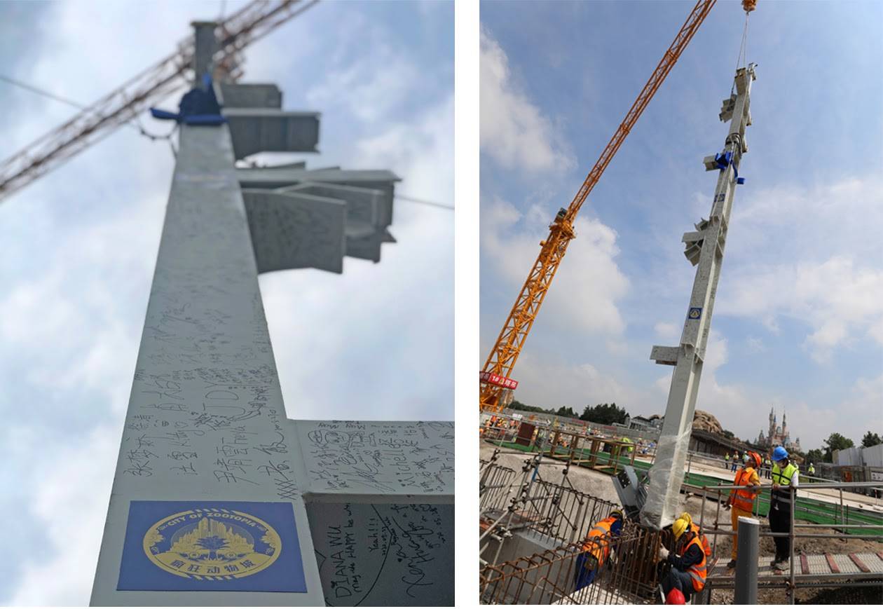 Shanghai Disney Resort is celebrating a construction milestone as the first vertical steel column has been installed in Zootopia land.