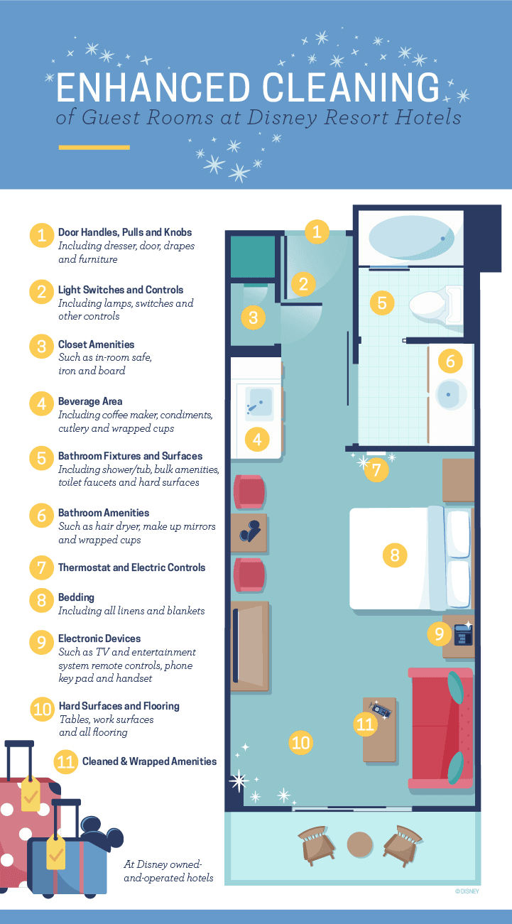 Disney has shared a video about the updates to the Resort experience and a new tip sheet about how room cleaning procedures have been enhanced.